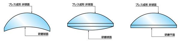 非球面又は球面側−プレス成形面、平面側−研磨面 |